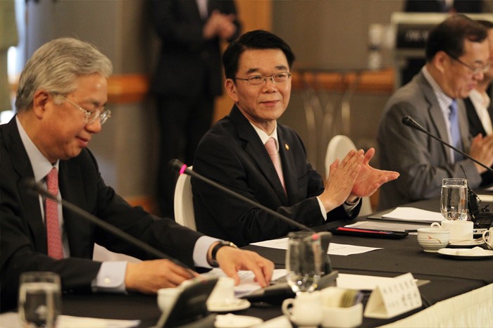 (서울=포커스뉴스) 강호인 국토교통부 장관이 18일 오전 서울 JW 메리어트 호텔에서 금번 대통령 이란 순방 시 경제사절단으로 참여한 이란 진출 건설․유관업계 대표와 간담회를 갖고 기업인들을 격려하는 한편 순방 후속조치 방안에 대해 논의학 있다. <사진제공=국토교통부>