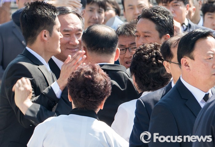 (광주=포커스뉴스) 36주년 5·18민주화운동 기념식이 거행된 18일 오전 광주 북구 운정동 5·18민주묘지에서 행사장에 참석하려는 박승춘 보훈처장을 5월 유가족이 제지하고 있다.