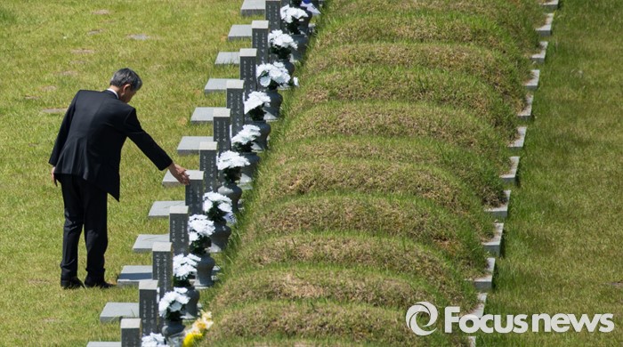 (광주=포커스뉴스) 36주년 5·18민주화운동 기념식이 거행된 18일 오전 광주 북구 운정동 5·18민주묘지에서 유가족들이 희생자를 기리고 있다.