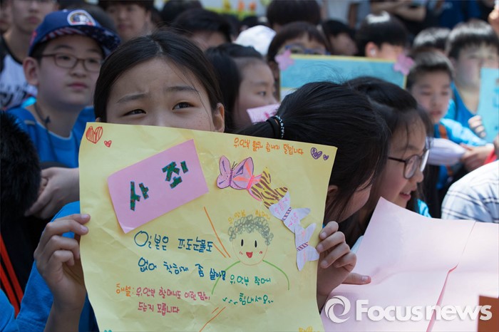 (서울=포커스뉴스) 18일 오후 서울 종로구 옛 일본대사관 앞에서 열린 '제1231차 일본군 위안부 문제해결을 위한 정기 수요시위'에 참석한 한 학생이 일본의 사과를 촉구하는 손펫말을 들고 있다.