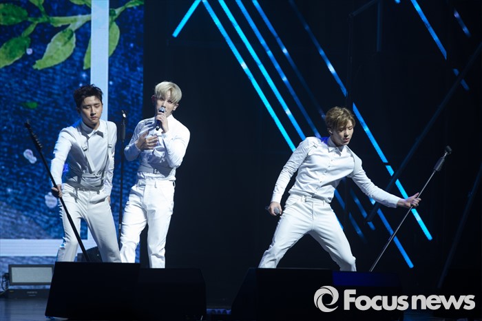 (서울=포커스뉴스) 18일 오후 서울 광진구 예스24 라이브홀에서 열린 아이돌그룹 몬스타엑스의 세번째 미니앨범 'THE CLEAN PART. 1 LOST' 발표 쇼케이스에 참석한 멤버들이 신곡 'Ex girl'의 무대를 선보이고 있다.