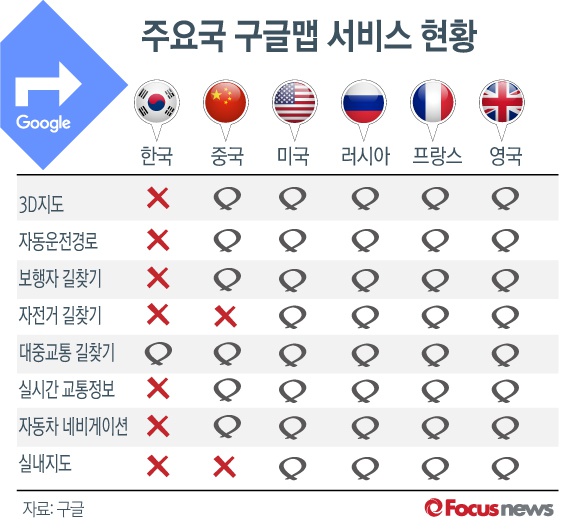 | △ [그래픽] 주요국 구글맵 서비스 현황 |