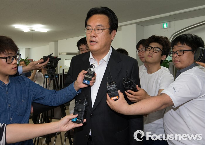 (공주=포커스뉴스) 정진석 새누리당 원내대표가 18일 오후 충남 공주 지난 선거 당시 사용했던 선거사무소에서 측근들과 논의중 잠시 사무실을 나서며 취재진의 질문에 답변하고 있다.