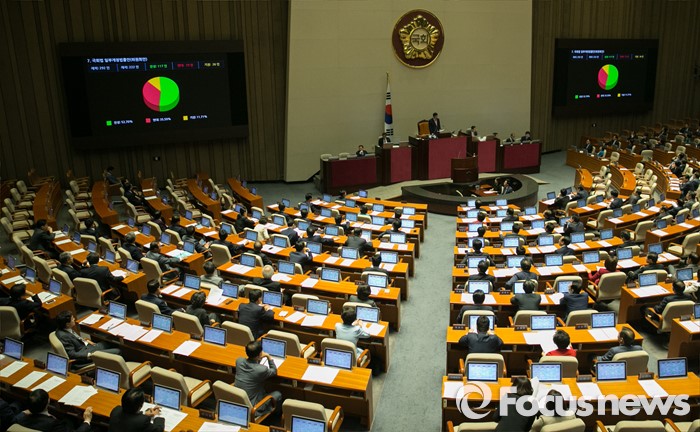 (서울=포커스뉴스) 19일 오전 서울 여의도 국회에서 열린 342회 국회(임시회) 1차 본회의에서 국회법 일부개정법률안(위원회안)이 재석 222인 중 찬성 117인, 반대 79인, 기권 26인으로 통과되고 있다.