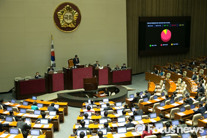 (서울=포커스뉴스) 19일 오전 서울 여의도 국회에서 열린 342회 국회(임시회) 1차 본회의에서 국회법 일부개정법률안에 대한 수정안(조원진 의원 등 30인 발의)이 재석 213인 중 찬성 7인, 반대 183인, 기권 23인으로 부결되고 있다.