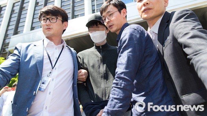 (서울=포커스뉴스) 지난 17일 서울 강남역 인근 노래방 화장실에서 직장인 A씨(23·여)를 흉기로 살해한 혐의를 받고 있는 김모(34)씨가 구속전피의자심문(영장실질심사)을 받기 위해 19일 오후 서울 서초경찰서를 나서고 있다.