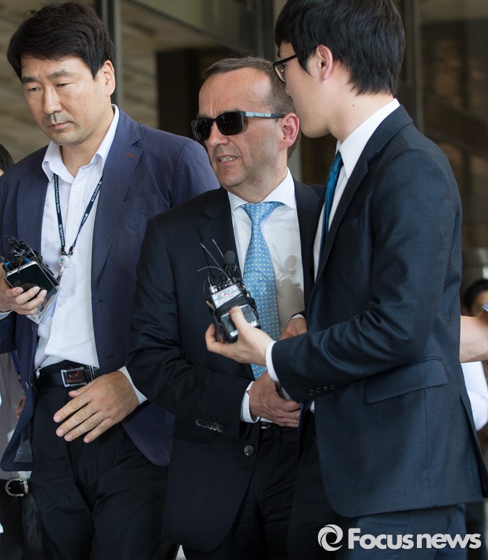 (서울=포커스뉴스) 울리히 호스터바흐 옥시 코리아 재무담당 이사가 소환조사를 받기 위해 19일 오후 서울중앙지방검찰청으로 들어서고 있다.