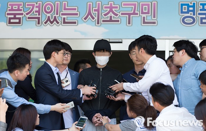 (서울=포커스뉴스) 지난 17일 서울 강남역 인근 노래방 화장실에서 직장인 A씨(23·여)를 흉기로 살해한 혐의를 받고 있는 김모(34)씨가 구속전피의자심문(영장실질심사)을 받기 위해 19일 오후 서울 서초경찰서를 나서고 있다.
