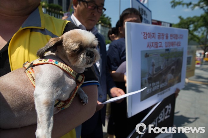 (서울=포커스뉴스) 19일 오후 서울 종로구 정부서울청사앞에서 동물자유연대 및 시민단체들이 강아지 공장 문제 해결을 촉구하며 기자회견을 하고 있다.