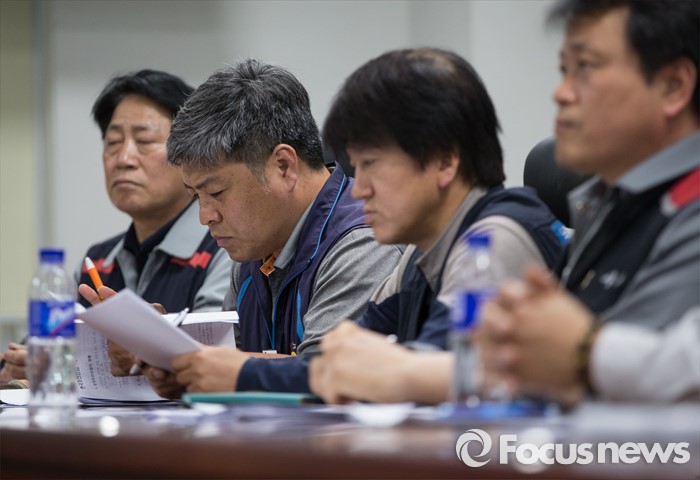 (서울=포커스뉴스) 19일 오후 서울 여의도 국회 의원회관에서 조선업종노조연대 대표자들과 각 정당 의원들 간담회에서 간담회에 참석한 조선업종노조연대 대표자들이 진지한 표정을 짓고 있다.