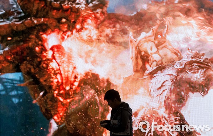 (고양=포커스뉴스) 19일 오후 경기 고양시 킨텍스 제1전시관에서 열린 2016 플레이엑스포를 찾은 관람객들이 대형 게임 전광판 앞을 지나가고 있다.