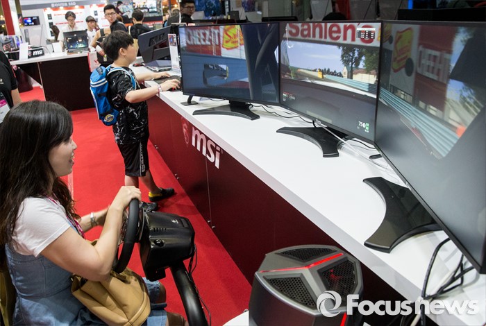 (고양=포커스뉴스) 19일 오후 경기 고양시 킨텍스 제1전시관에서 열린 2016 플레이엑스포를 찾은 관람객들이 게임을 즐기고 있다.