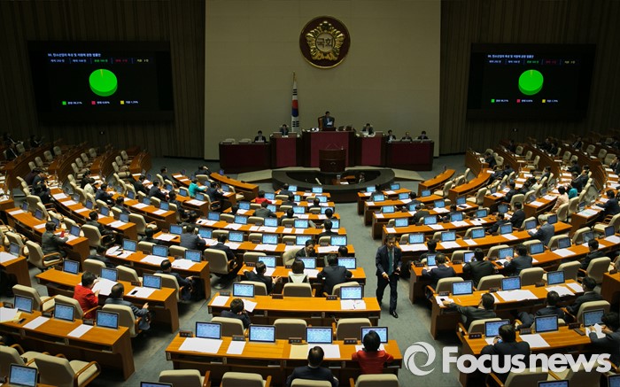 (서울=포커스뉴스) 19일 오후 서울 여의도 국회에서 열린 342회 국회(임시회) 1차 본회의에서 탄소산업의 육성 및 지원에 관한 법률안이 찬성 165인, 기권 3인으로 통과되고 있다.
