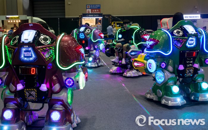 (고양=포커스뉴스) 19일 오후 경기 고양시 킨텍스 제1전시관에서 열린 2016 플레이엑스포를 찾은 관람객들이 로봇게임을 즐기고 있다.
