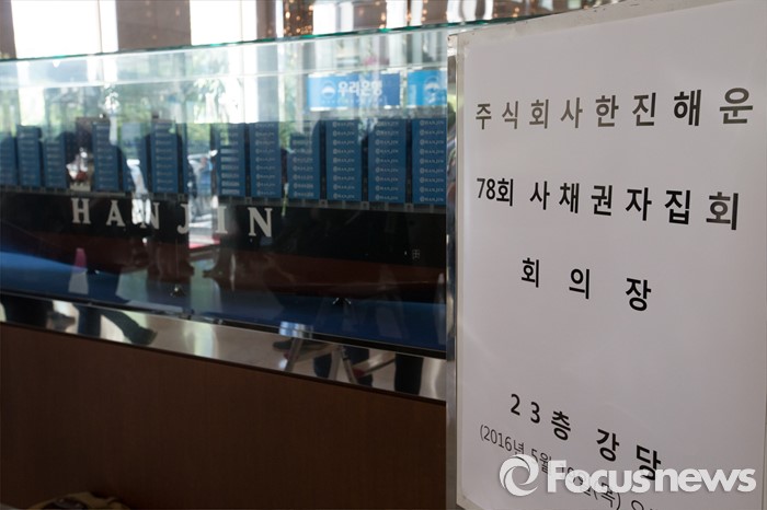 (서울=포커스뉴스) 한진해운의 채무조정을 위한 첫 사채권자 집회가 열린 19일 오후 서울 영등포구 한진해운 본사 로비에 취재진들이 대기하고 있다.