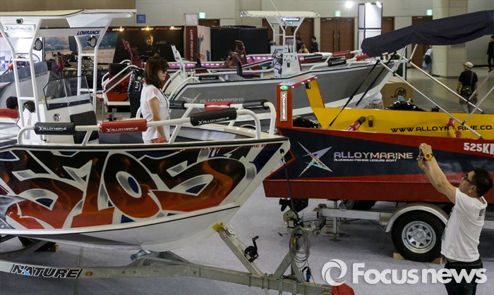 (고양=포커스뉴스) 19일 오후 경기 고양시 킨텍스 제1전시관에서 열린 2016 경기국제보트쇼를 찾은 관람객들이 보트 위에서 기념촬영을 하고 있다.