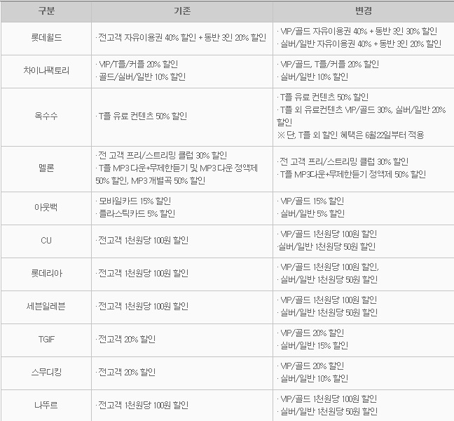 SK텔레콤은 앞서 자주 가는 제휴처에서 할인 혜택을 몰아서 받을 수 있는 ‘내 맘대로 T멤버십’ 서비스의 대상을 VIP와 골드 등급에서 VIP등급만 가능하도록 바꾸기도 했다.
