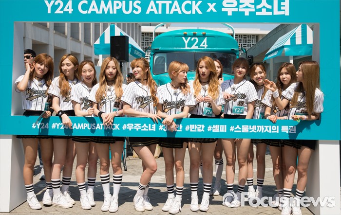 (서울=포커스뉴스) 19일 오후 서울 종로구 성균관대 캠퍼스에서 걸그룹 우주소녀의 멤버들이 'Y24 스쿨어택' 행사에 참여하고 있다.