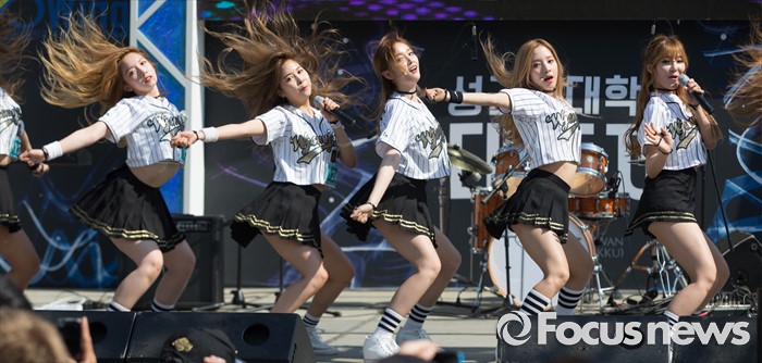 (서울=포커스뉴스) 19일 오후 서울 종로구 성균관대 캠퍼스에서 걸그룹 우주소녀의 멤버들이 'Y24 스쿨어택' 행사에 참여해 무대를 선보이고 있다.