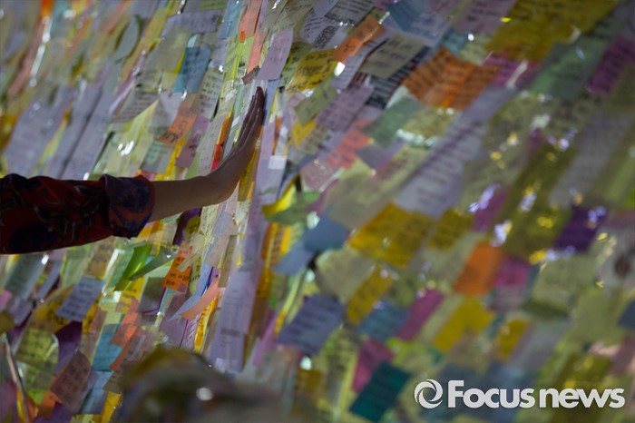 (서울=포커스뉴스) 19일 오후 서울 서초구 강남역 10번출구에서 시민이 '강남 묻지마 살인' 피해자를 추모하고 있다.