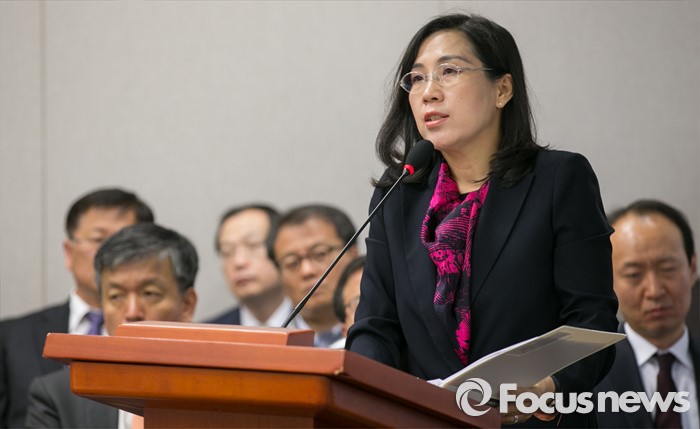 김 수석은 "이제 19대 국회가 막을 내리고 20대 국회가 문을 연다"며 "'일자리 창출'에 여야가 따로 있을 수 없듯이 '노동개혁'에도 여야가 따로 있을 수 없다. 국회가 일자리로 인해 고통받는 국민의 마음을 진실로 헤아리고 이들의 눈물을 닦아 주기 원한다면, 새로운 20대 국회에서는 반드시 노동개혁 법안을 통과시켜 주시기 바란다"고 당부했다.김현숙 청와대 고용복지수석. 사진은 지난해 10월 23일 오전 서울 여의도 국회에서 열린 운영위원회 국정감사에 참석한 김 수석이 의원들의 질의에 답하고 있는 모습이다. 2015.10.23 박동욱 기자