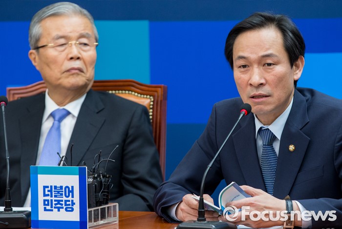 (서울=포커스뉴스) 20일 오전 서울 여의도 국회에서 열린 더불어민주당 비상대책위원회의에 참석한 우상호 원내대표가 모두발언 하고 있다.
