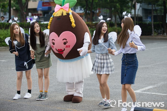 (서울=포커스뉴스) 20일 오전 서울 영등포구 KBS에서 걸그룹 에이프릴의 멤버들이 생방송 뮤직뱅크 리허설에 참여하기 위해 이동하던 중 포토타임을 갖고 있다.