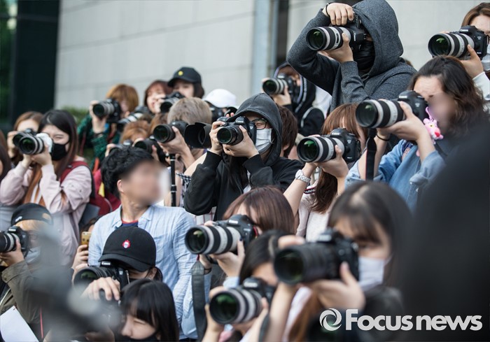 (서울=포커스뉴스) 20일 오전 서울 영등포구 KBS에서 생방송 뮤직뱅크 리허설에 참여하는 가수들을 팬들이 촬영하고 있다.