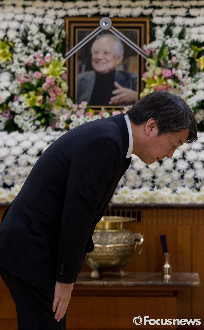 (서울=포커스뉴스) 20일 오전 서울 송파구 아산병원 장례식장에 마련된 故 김재순 전 국회의장의 빈소를 찾은 안철수 국민의당 상임공동대표가 조문을 마친 후 유가족들을 위로하고 있다.