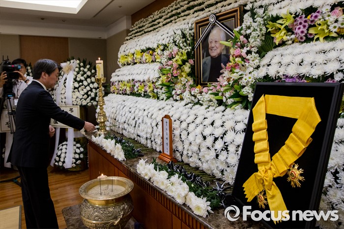 (서울=포커스뉴스) 20일 오전 서울 송파구 아산병원 장례식장에 마련된 故 김재순 전 국회의장의 빈소를 찾은 안철수 국민의당 상임공동대표가 헌화하고 있다.