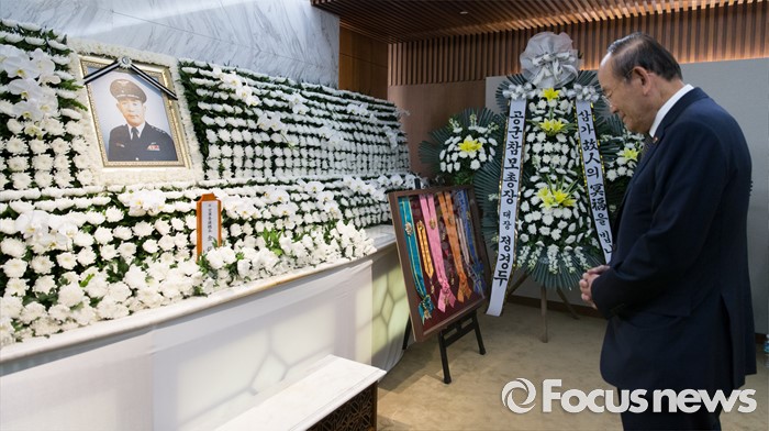 (서울=포커스뉴스) 20일 오전 서울 서대문구 신촌세브란스병원 장례식장에 마련된 백범 김구 선생의 아들 김신 전 공군참모총장 빈소에 조문행렬이 이어지고 있다.