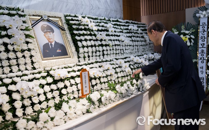 (서울=포커스뉴스) 20일 오전 서울 서대문구 신촌세브란스병원 장례식장에 마련된 백범 김구 선생의 아들 김신 전 공군참모총장 빈소에 조문행렬이 이어지고 있다.