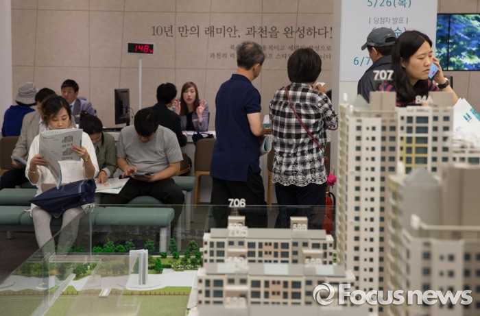 (서울=포커스뉴스) 20일 오전 서울 송파구 래미안 하우스에 개관한 래미안 과천 센트럴 스위트 견본주택을 찾은 시민들로 붐비고 있다.