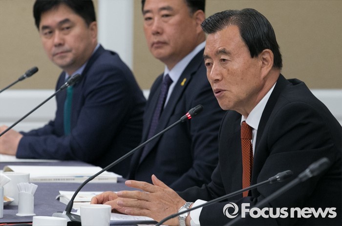 (서울=포커스뉴스) 20일 오전 서울 여의도 국회 귀빈식당에서 충청남도 주최로 열린 국회의원 초청 정책설명회에 참석한 훙문표 새누리당 사무총장 대행이 발언하고 있다.