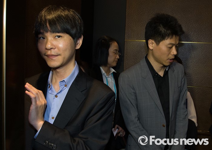 (서울=포커스뉴스) 이세돌(왼쪽) 9단과 양건 한국기사회 회장이 20일 오전 서울 종로구 플라자호텔에서 열린 한국기원 맥심커피배 시상식 참석 후 엘리베이터를 타고 행사장을 빠져나가고 있다.