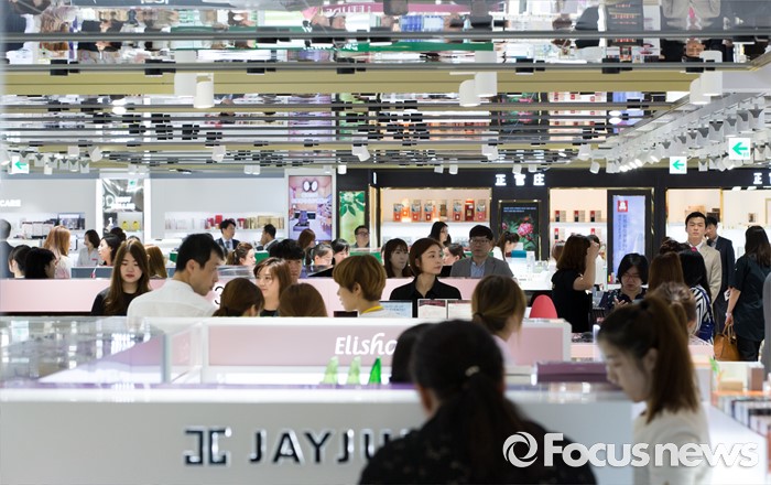 (서울=포커스뉴스) 두타면세점이 프리오픈한 20일 오후 서울 중구 두산타워 면세점에서 관광객과 소비자들이 매장을 둘러보고 있다.