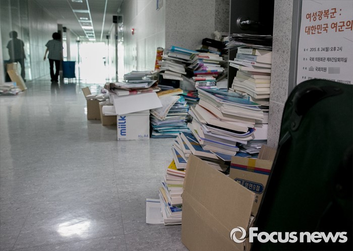 (서울=포커스뉴스) 19대 국회가 사실상 마무리된 20일 오후 서울 여의도 국회 의원회관 낙천 및 낙선 의원실 앞에 정리된 짐들이 쌓여 있다.