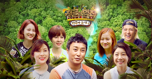 이날 '정글의 법칙'은 여성 출연자들이 파푸아뉴기니의 정글 한복판에서 구한 재료를 가지고 손수 뷔페를 차리는 이야기로 꾸며졌다. 개그우먼 김지민, 걸그룹 '걸스데이' 소진과 '에이핑크' 오하영, 배우 최송현과 최윤영 등이 출연했다.20일 방영된 SBS 예능 '정글의 법칙 in 파푸아뉴기니'가 금요 예능프로그램 가운데 시청률 1위를 차지했다. 사진은 프로그램 포스터. 왼쪽부터 김지민, 오하영, 최윤영, 김병만, 최송현, 소진, 강남. <사진제공=SBS>