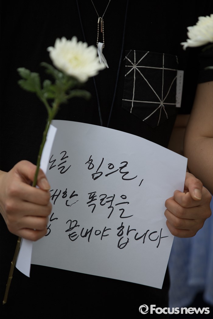 (서울=포커스뉴스) 21일 오후 서울 서초구 강남역 10번 출구 인근에서 시민들이 '강남역 여성혐오 살인사건 추모 집회'에 참석해 행진을 준비하고 있다.