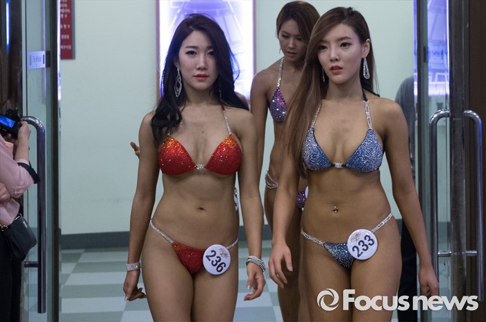 (서울=포커스뉴스) 22일 오전 서울 서초구 더케이호텔 아트홀에서 열린 피트니스 대회 'WBFF 아시아 챔피언십'에 참가한 선수들이 대기장으로 향하고 있다.