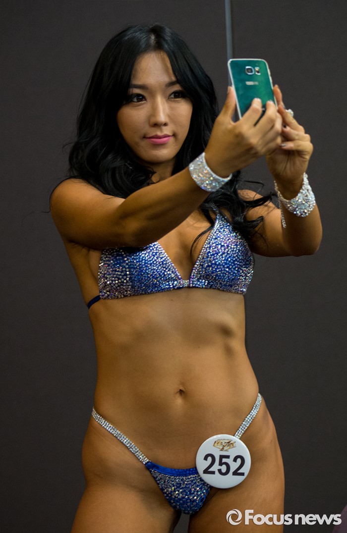 (서울=포커스뉴스) 22일 오전 서울 서초구 더케이호텔 아트홀에서 열린 피트니스 대회 'WBFF 아시아 챔피언십'에 참가한 선수들이 대기실에서 셀카를 찍고 있다.