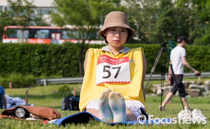 (서울=포커스뉴스) 22일 오후 서울 용산구 이촌 한강공원에서 열린 '한강 멍때리기 대회'에서 참가자들이 멍하게 앉아 있다.
