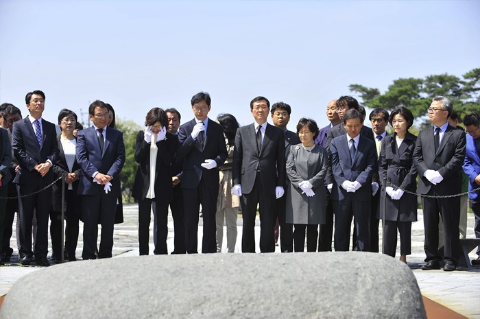 | △ 20대 총선 더민주 김경수-민홍철 당선인, 노무현 전 대통령 묘역 참배 |
