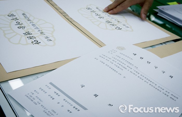 (서울=포커스뉴스) 23일 오전 서울 여의도 국회 의안과에서 한 직원이 정부로 이송할 19대 국회 마지막 본회의 의결 법안과 공문을 정리하고 있다. 이날 국회는 상임위 차원의 청문회 개최를 활성화하는 것을 골자로 한 국회법 개정안 등을 정부로 이송한다.