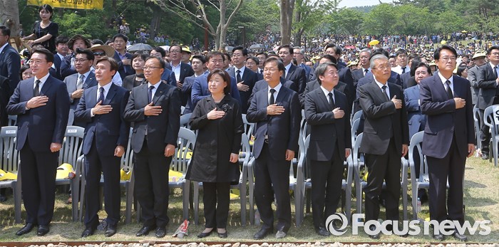 노 전 대통령 추도식, 국민의례하는 정당 인사들