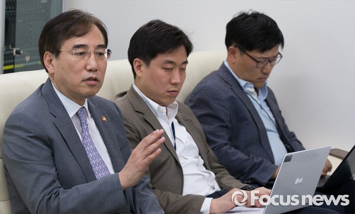 (세종=포커스뉴스) 이석준(왼쪽) 국무조정실장이 23일 오후 세종시 정부세종청사 국무총리비서실·국무조정실 기자실에서 출입기자단과 국정현안에 대한 간담회를 갖고 있다. 이 국조실장은 상시 청문회법과 관련해 앞으로 행정부 공무원들의 업무 위축 우려 가능성이 높다고 밝혔다.