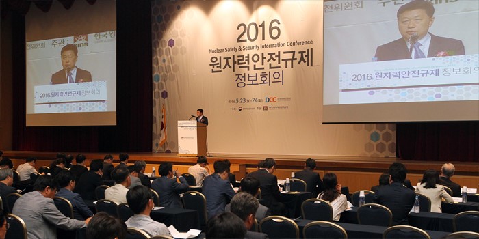 (대전=포커스뉴스) 김용환 원자력안전위원회 위원장이 23일 대전 컨벤션센터에서 열린 2016원자력안전규제정보회의에 참석해 축사를 하고 있다. <사진제공=원자력안전위원회>