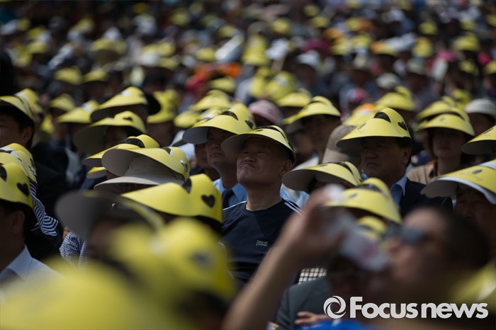 (김해=포커스뉴스) 23일 오후 경남 김해시 진영읍 봉하마을에서 열린 '故 노무현 전 대통령 서거 7주기 추도식'에서 故 노무현 전 대통령 묘역을 찾은 추도객들이 추도식에 참석하고 있다.