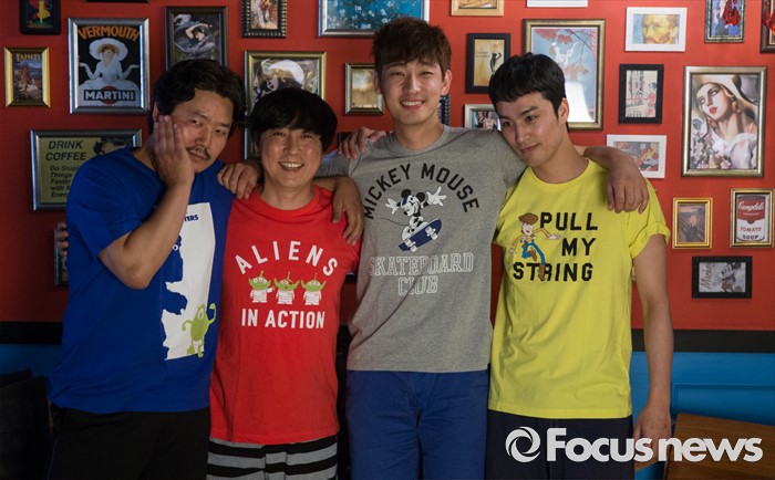 (서울-포커스뉴스) 23일 오후 서울 마포구의 한 카페에서 열린 '망원동 브라더스' 포스터 촬영현장에 참여한 배우 윤성원(왼쪽부터), 노진원, 윤박, 황규인이 포토타임을 갖고 있다.