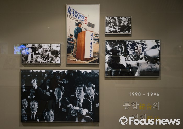 (김해=포커스뉴스)故 노무현 전 대통령 서거 7주기인 23일 오후 경남 김해시 진영읍 봉하마을 '추모의 집'에 노무현 전 대통령이 담긴 사진들이 걸려 있다.